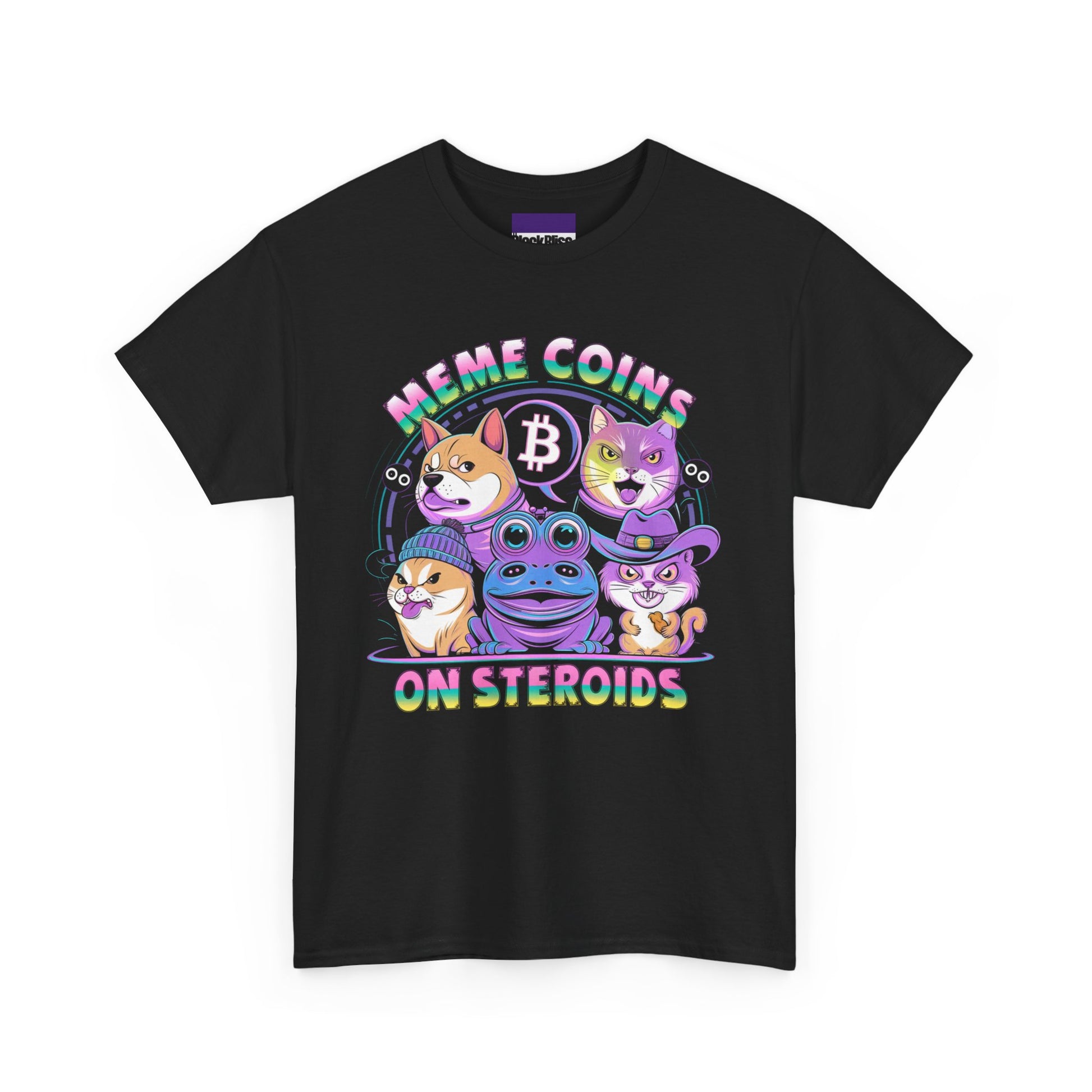 The "Meme Coins on Steroids" t-shirt isn’t just apparel — it’s a tribute to the madness that makes crypto unforgettable.